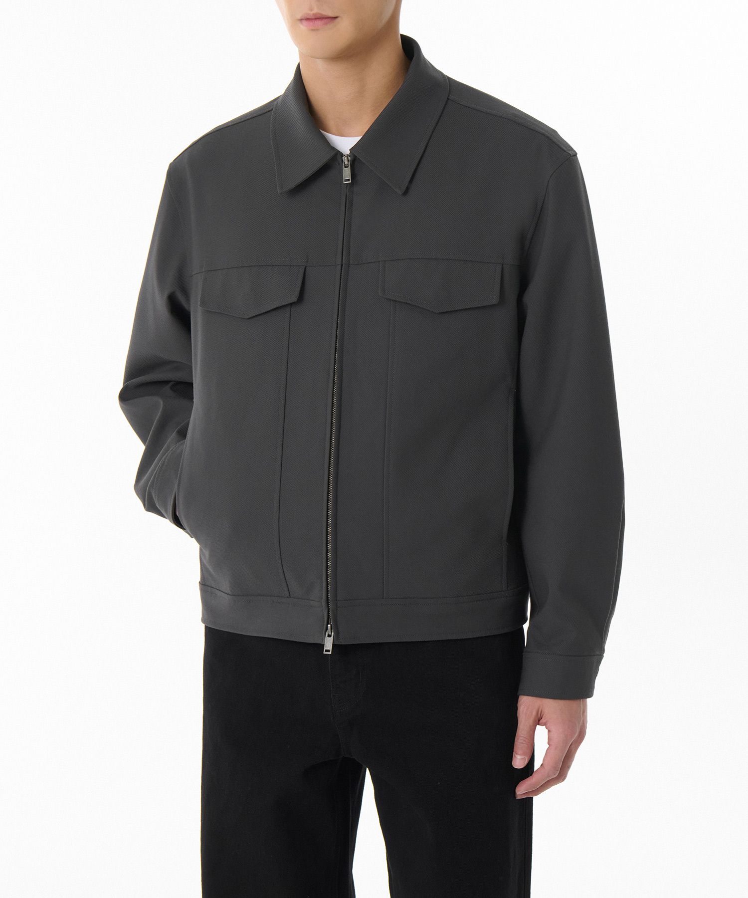무신사 스탠다드 위프코드 미니멀 지퍼업 트럭커 자켓 [회색]