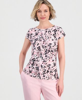 Kasper 여성 플로럴 플리츠 캡소매 상의
