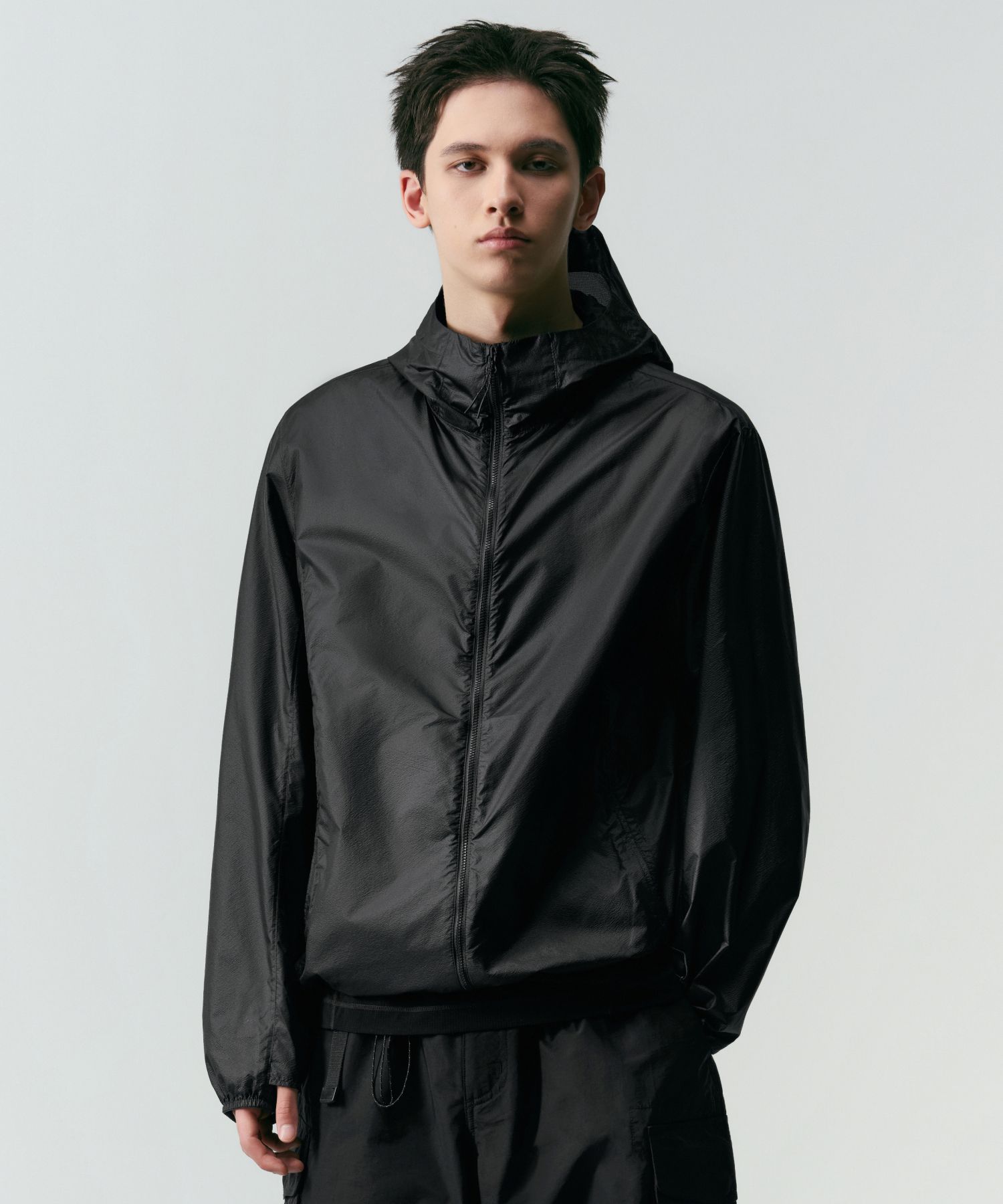 무신사 스탠다드 [시티 레저] 경량 글로시 윈드브레이커 재킷 [블랙]
