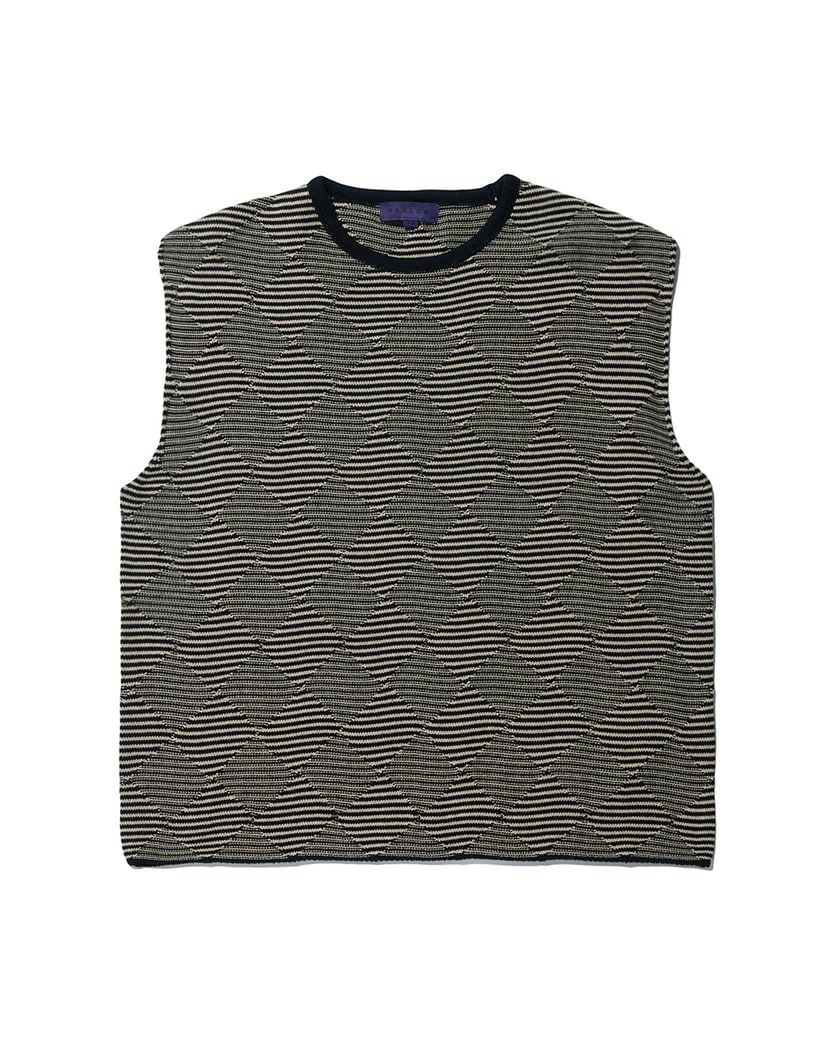 베슬로 체크 니트 조끼 블랙 베이지