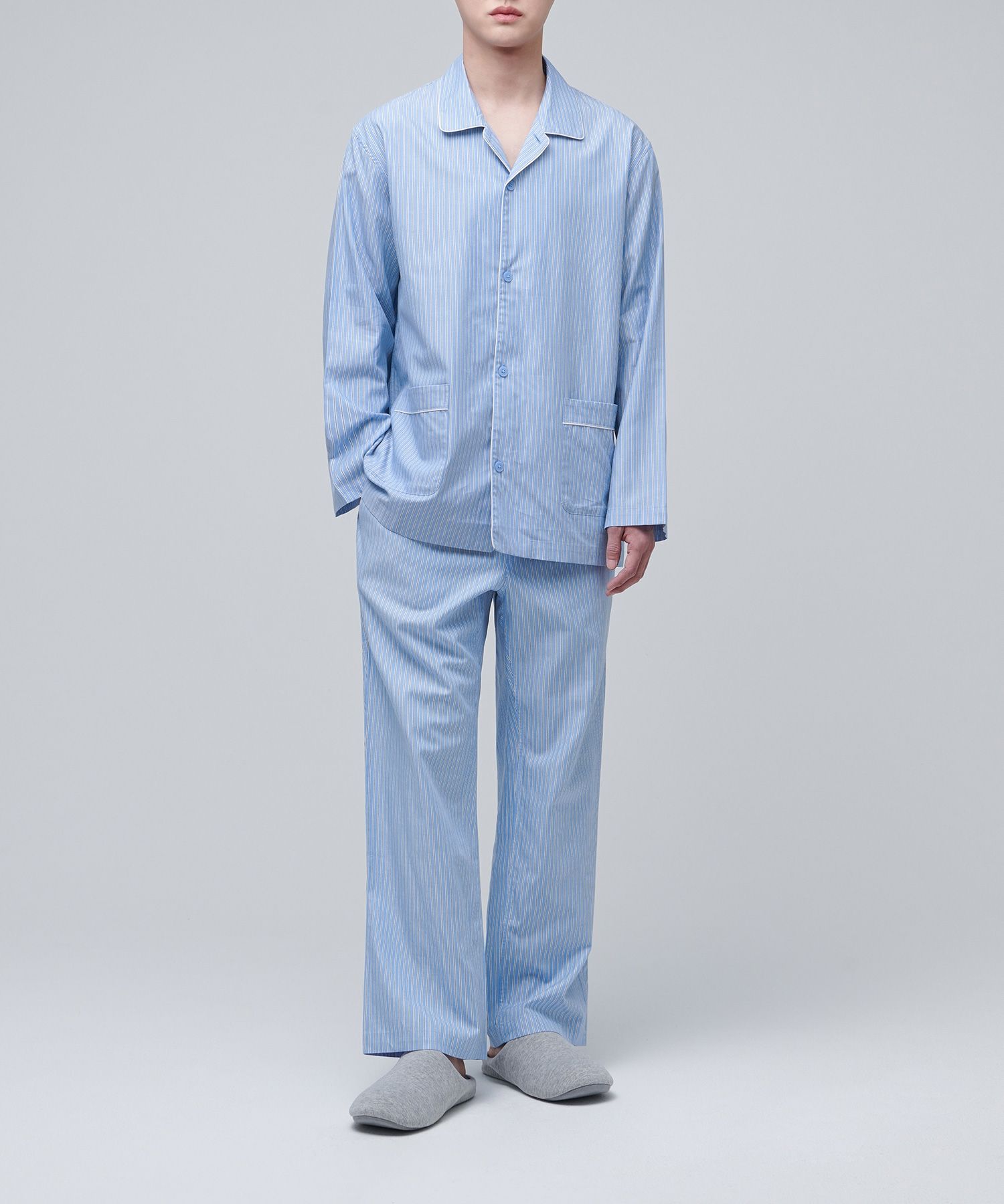 무신사 스탠다드 코튼 텐셀 파자마 세트 [하늘색 줄무늬]