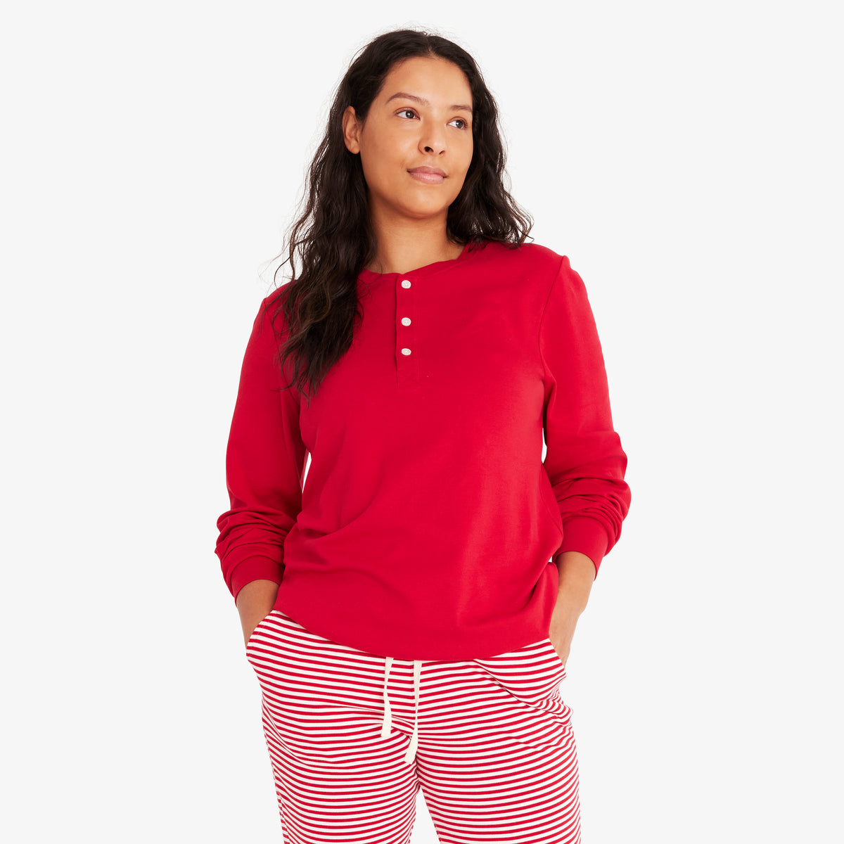 유기농 장팔 Henley 파자마 상의