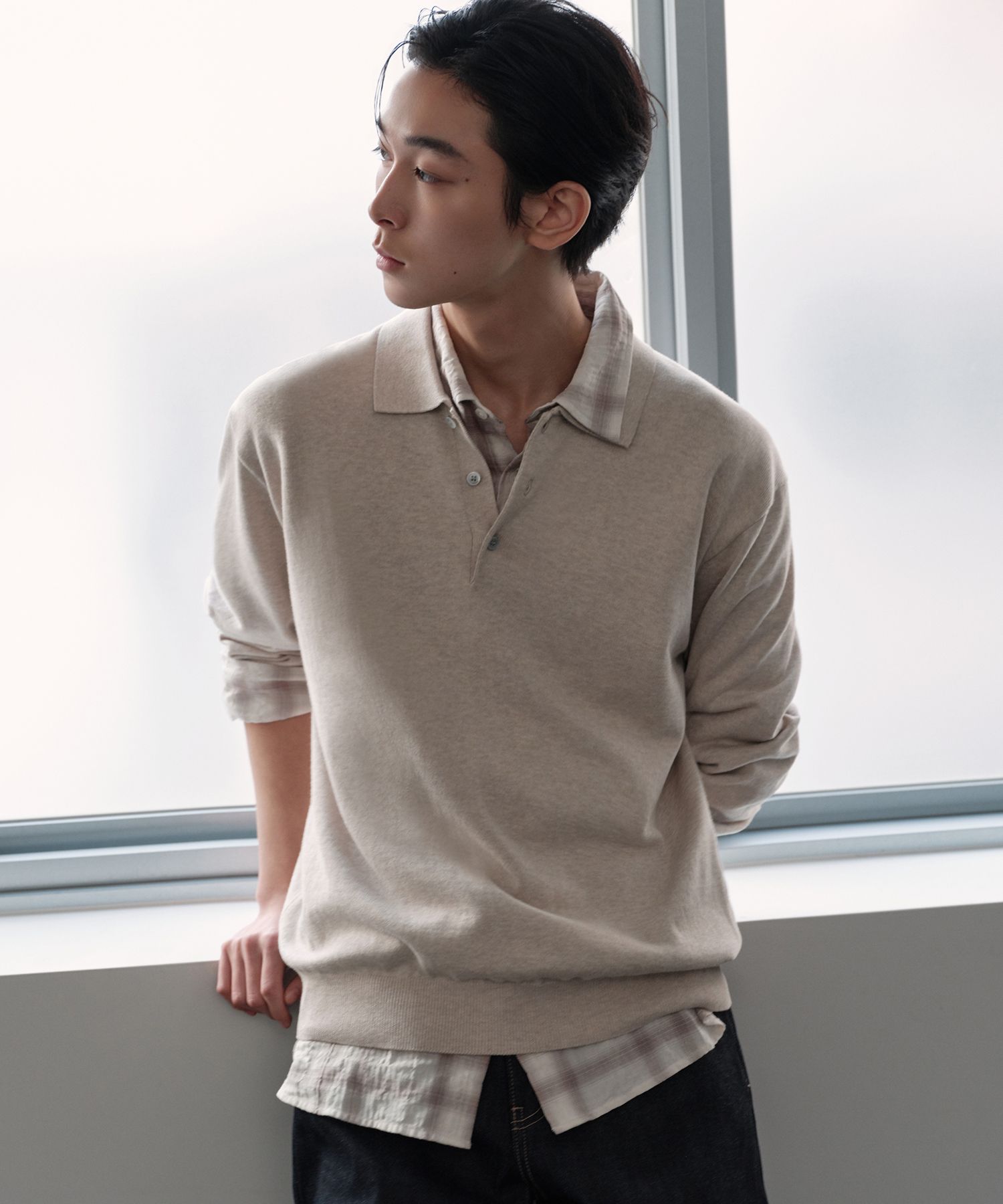 MUSINSA STANDARD 워셔블 수피마 코튼 롱 슬리브 니트 폴로 셔츠 [오트밀]
