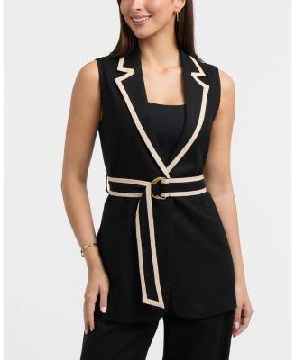 엘렌 트레이시 브랜드, 여성용 슬리브리스 조끼, 대비 디테일링 $77.4 (정가 $129), 40% 할인, 가격대 비교적 저렴하며 디자인도 우수하다고 평가됨. 다양한 색상과 사이즈로 출시되어 많은 여성들이 구매하고 있다.