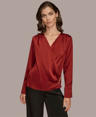 Donna 도나 카란 뉴욕 여성 롱 슬리브 페이크 랩 탑