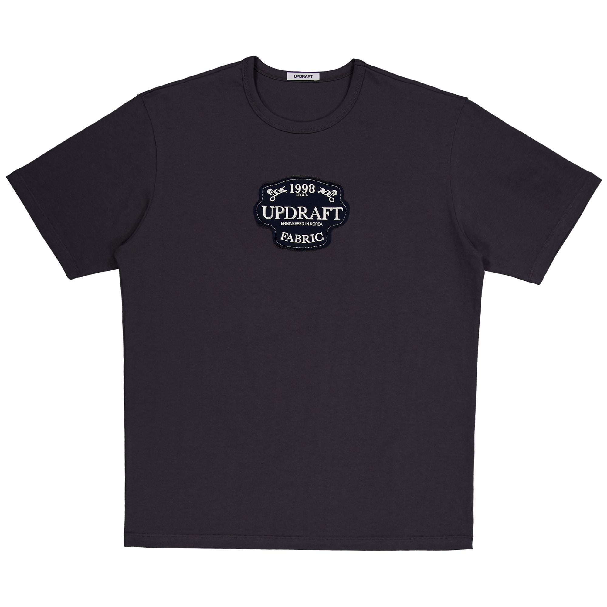 업드래프트 애플리케 코튼 티셔츠 그레이