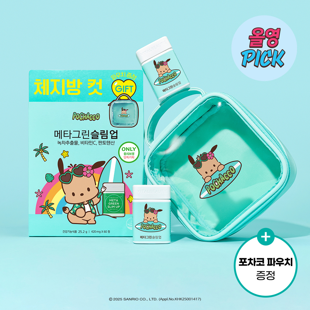탄닝 포차코 에디션 VITALBEAUTIE 메타그린 슬림업 30정 세트 파우치 포함, 체중 감량 효과 기대 원래 가격 $42.00, 현재 $13.01 (할인 69%)