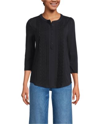 랜즈 엔드 여성 3/4 소매 가벼운 제리 장식 티셔츠