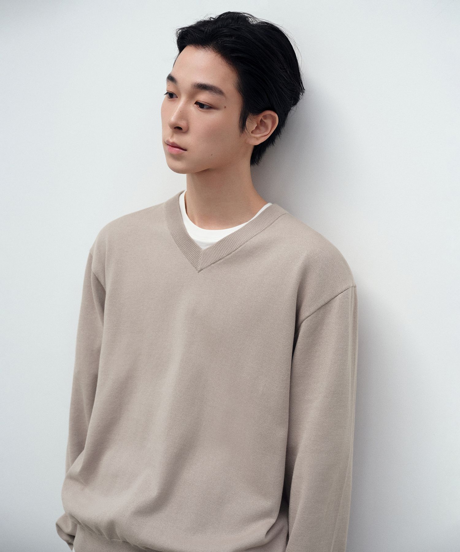 MUSINSA 무신사 스탠다드 워셔블 수피마 코튼 브이넥 니트 머쉬룸